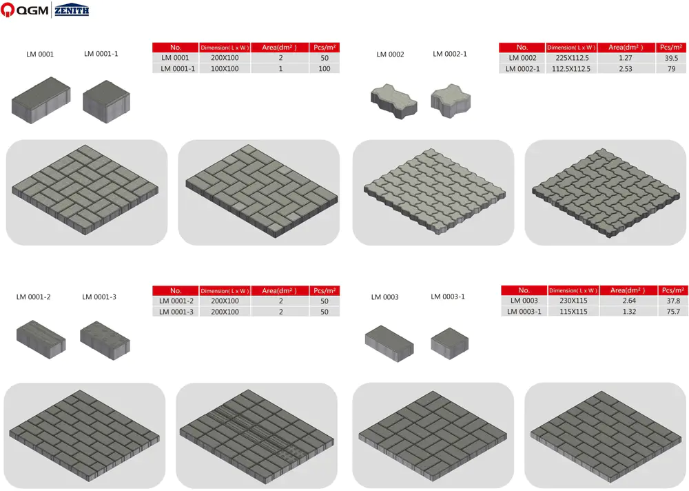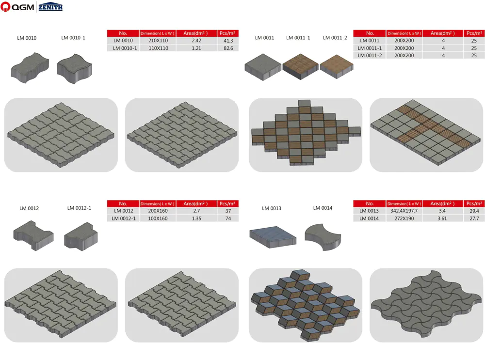 熟練したメーカーである QGM ブロック マシンは、一流の舗装金型を提供することを目指しています。私たちは最高のアフターサポートと迅速な配達を提供することをお約束します。0.3〜0.4 mmのクリアランスを備えた金型は、高精度で正確な垂直角度と滑らかな側壁を備えており、石の生産にバリがありません。自由表面デジタル設計と交換可能な圧力プレート設計を実現できます。